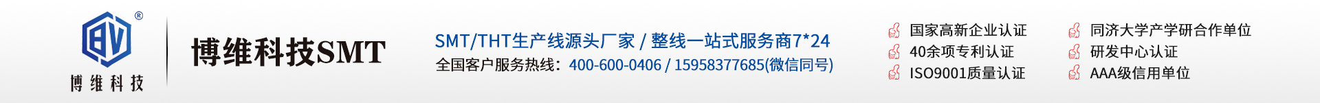 嘉興博維電子科技有限公司位于浙江省嘉興市南湖區文賢路134號,是一家研發、生產回流焊、絲印機、 貼片機等SMT設備的專業生產廠家!本公司定位為杰出品質,尊重科學、講究細節、注重選材、性能 至上是我們的生產宗旨; 提供高品質、省電、易用、穩定的SMT表面貼裝設備一直是博維科技人的奮斗目標! 目前,博維科技已經成為國內杰出SMT設備供應商之一,SMT設備出貨量穩居前茅!